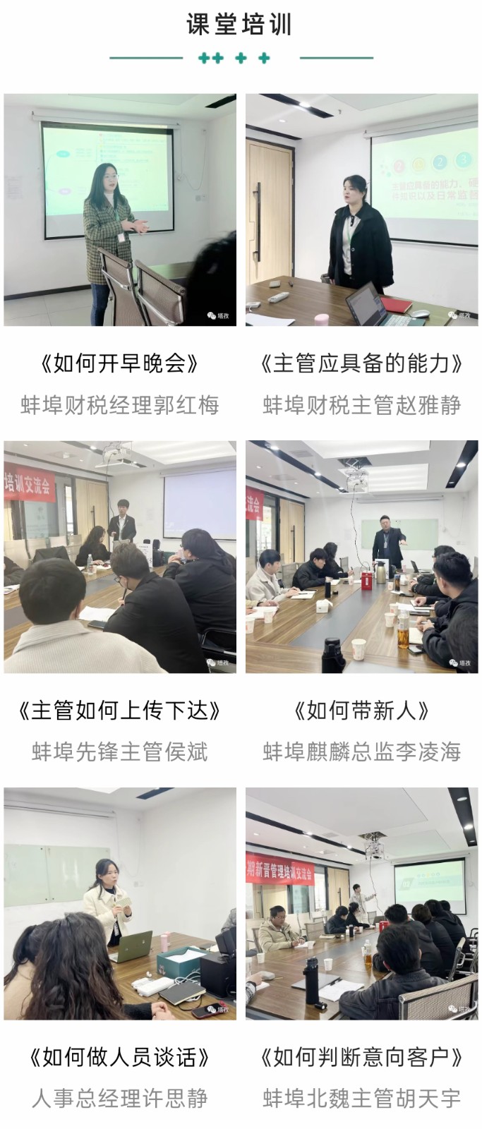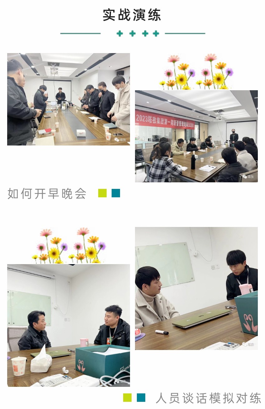 本次培訓(xùn)課程干貨滿滿,圍繞“如何開早晚會(huì)”、“主管如何上傳下達(dá)”、“如何帶新人”、“如何判斷意向客戶”、“主管如何做日-周-月度規(guī)劃”等多個(gè)維度細(xì)致剖析了在塔孜公司一個(gè)管理者應(yīng)具備的專業(yè)知識和技能,配合現(xiàn)場演練,統(tǒng)一規(guī)范管理動(dòng)作,建立標(biāo)準(zhǔn)化運(yùn)作模式。